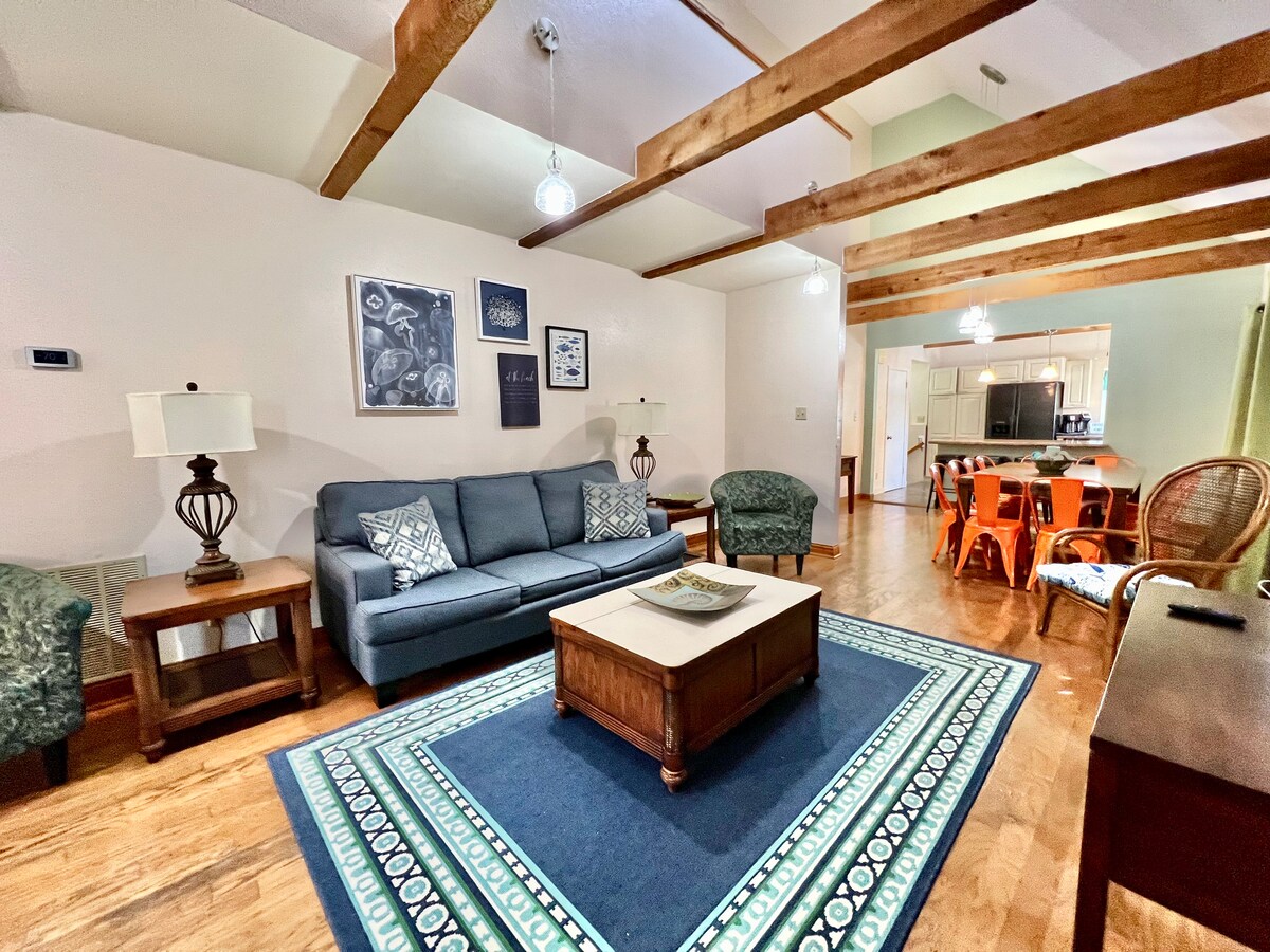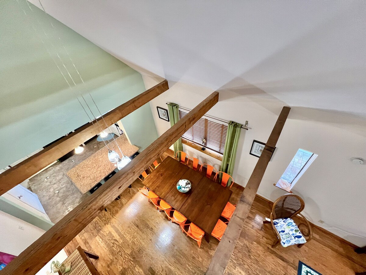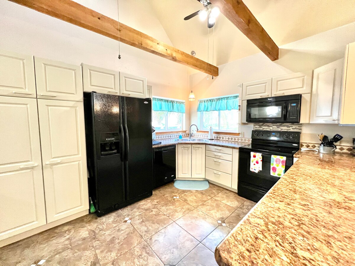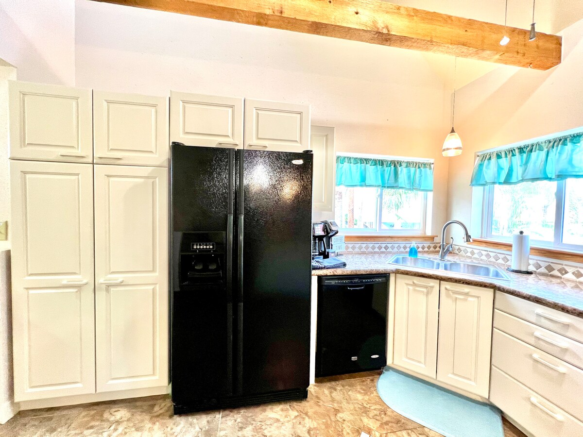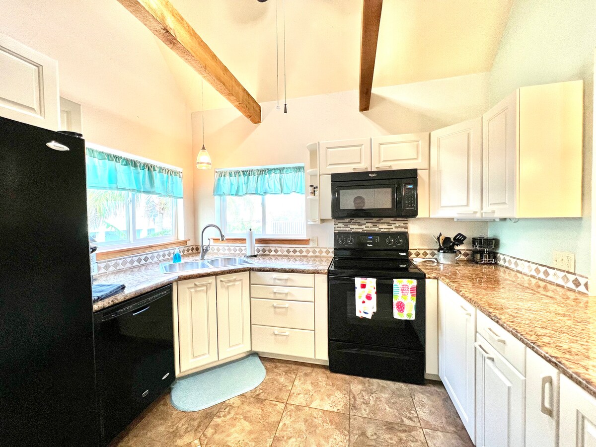 Our Kitchen is fully loaded with pots, pans, utilities, blender, toaster, coffee maker and more, ready to prepare yummy meals with a large dining area and breakfast bar seating.