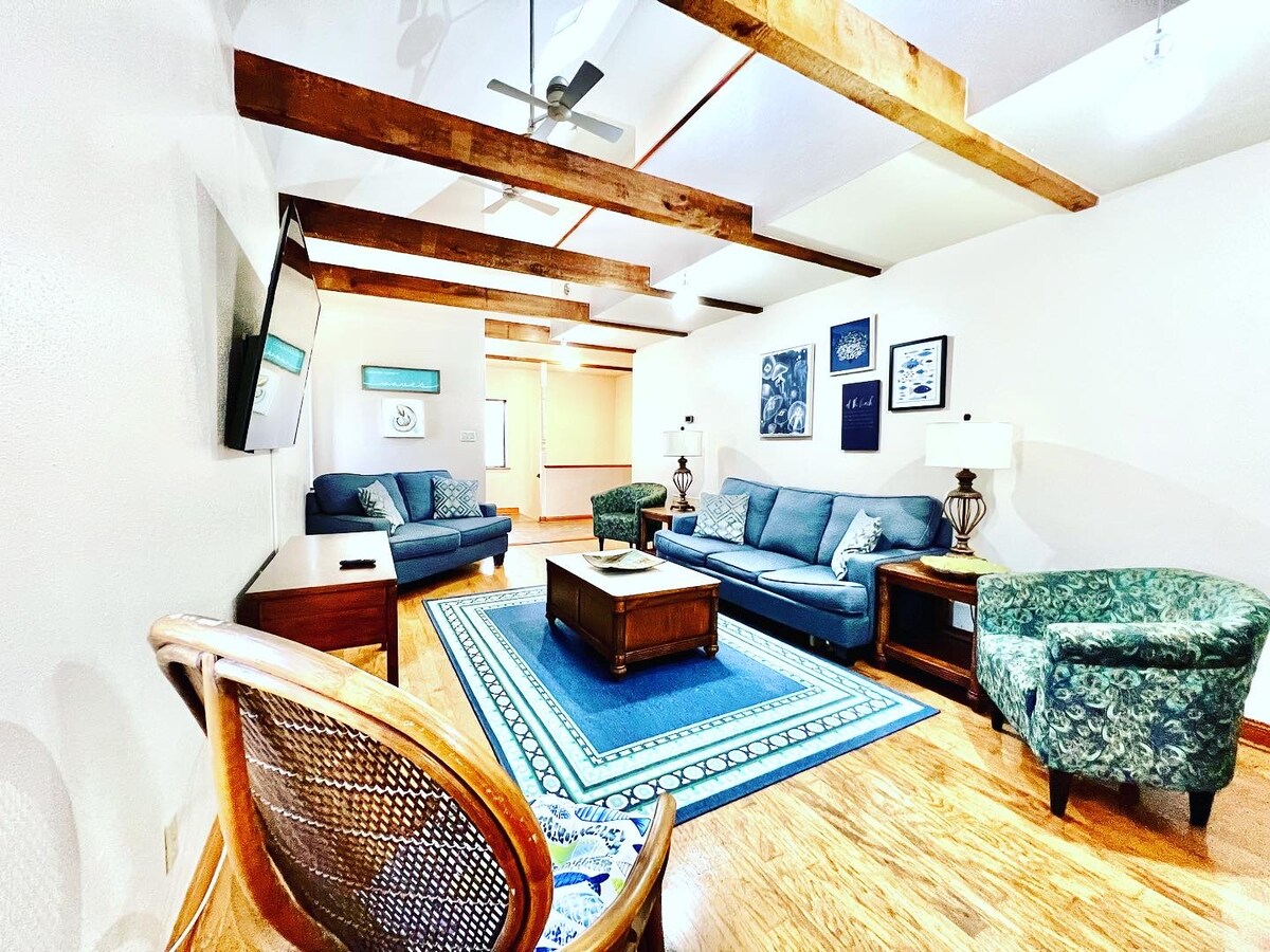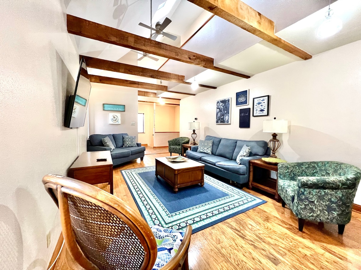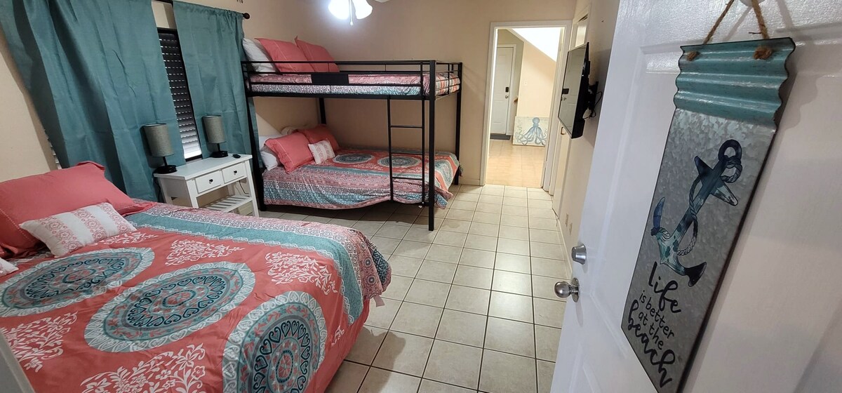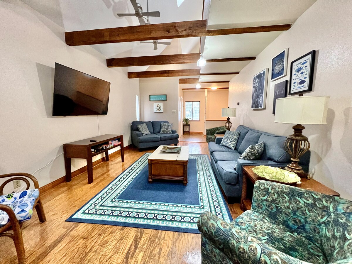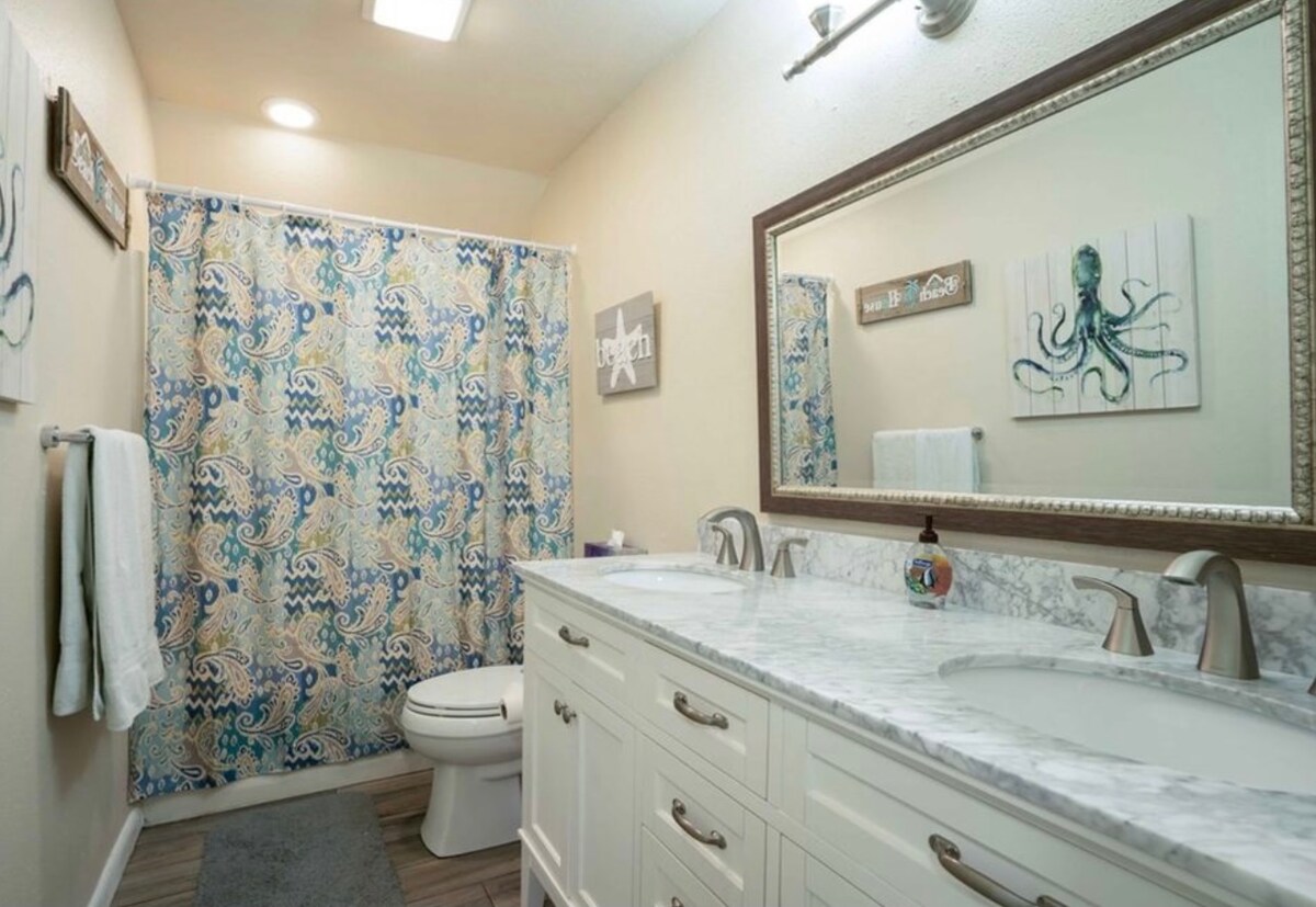 Our beautiful beach house has 4 bedrooms and 3 baths and sleeps 15 guests.