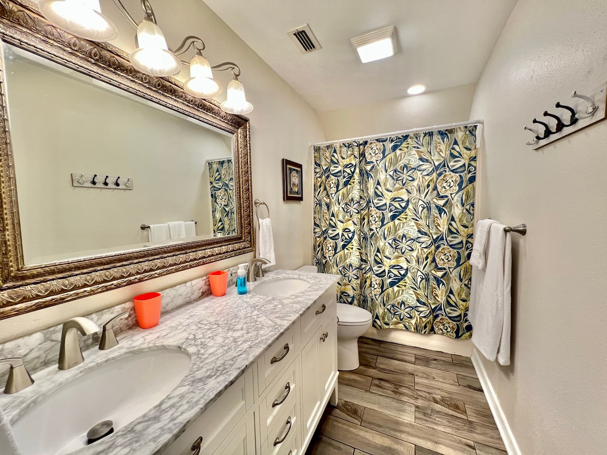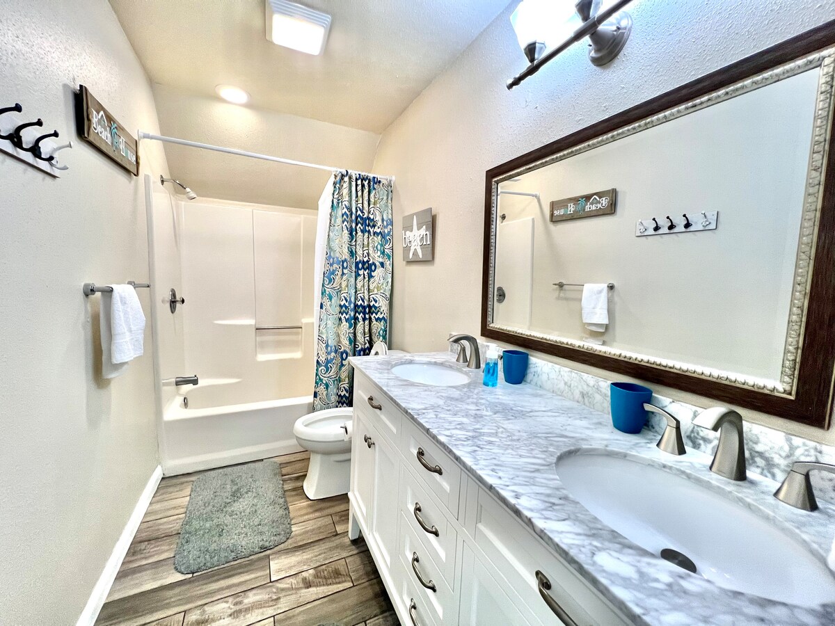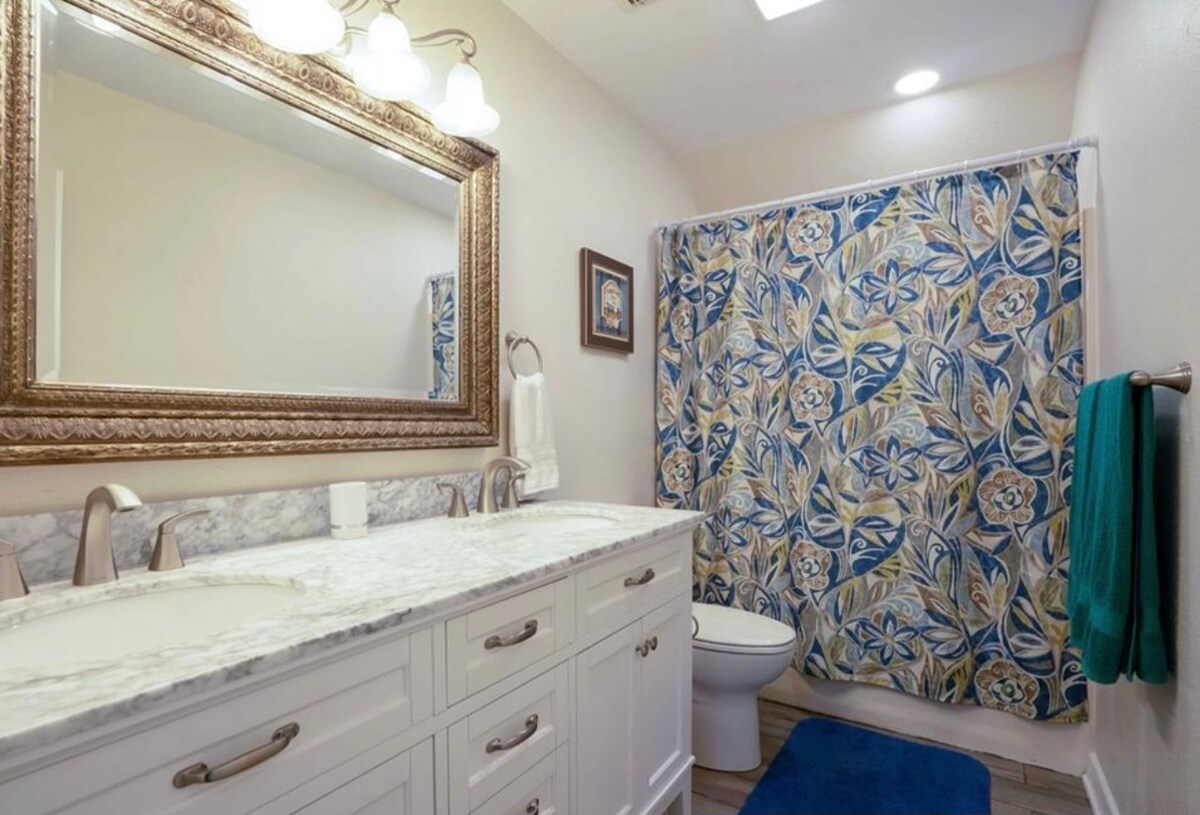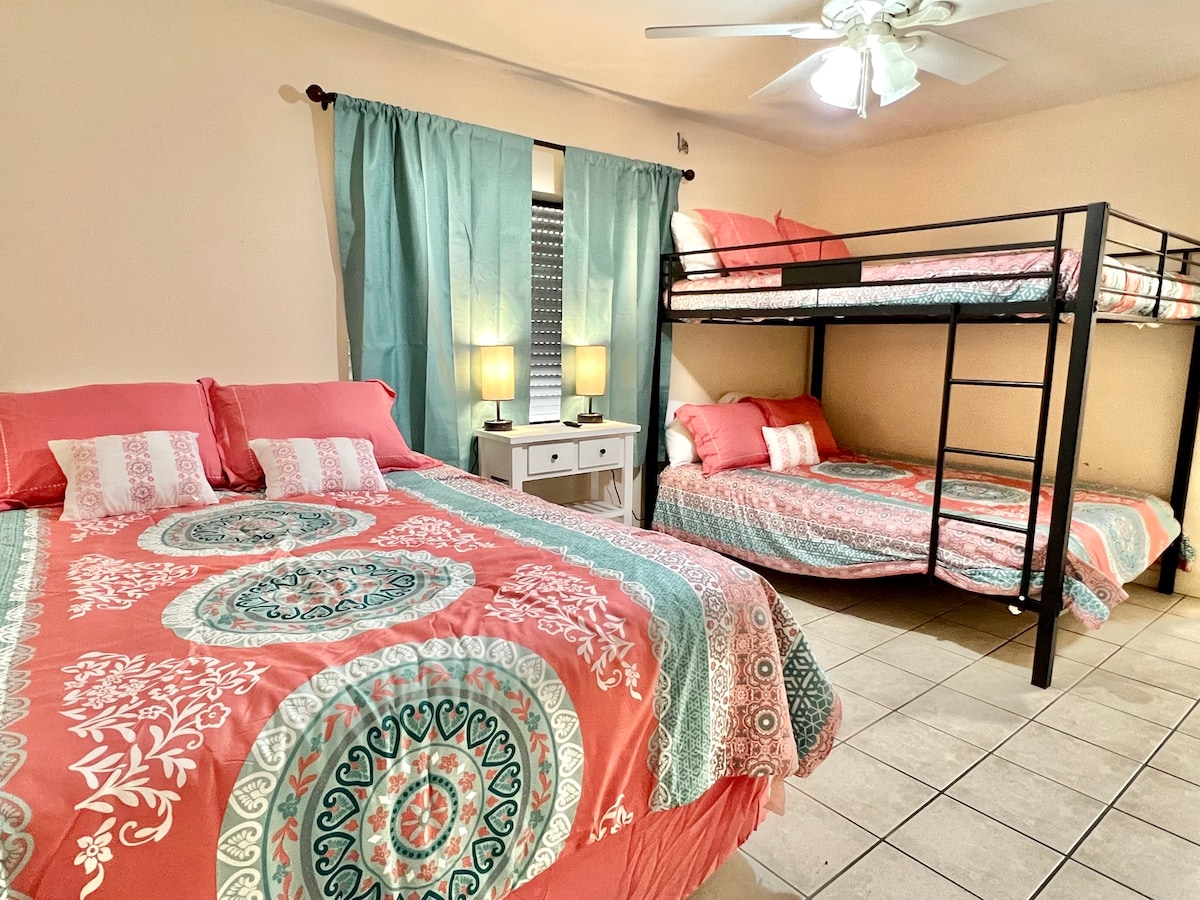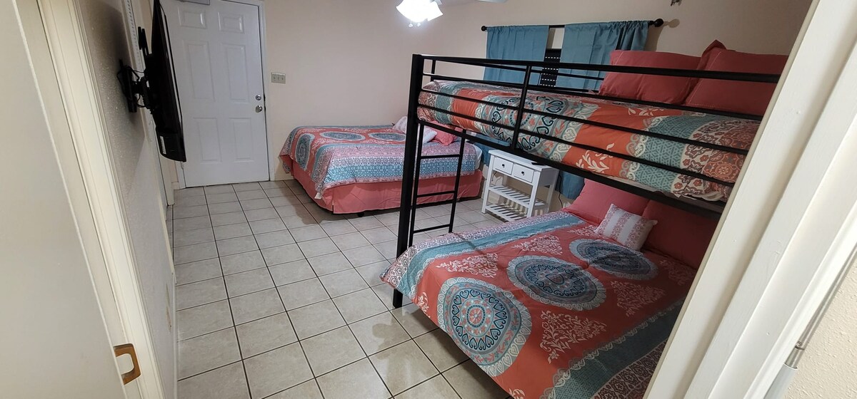 Our beautiful beach house has 4 bedrooms and 3 baths and sleeps 15 guests.