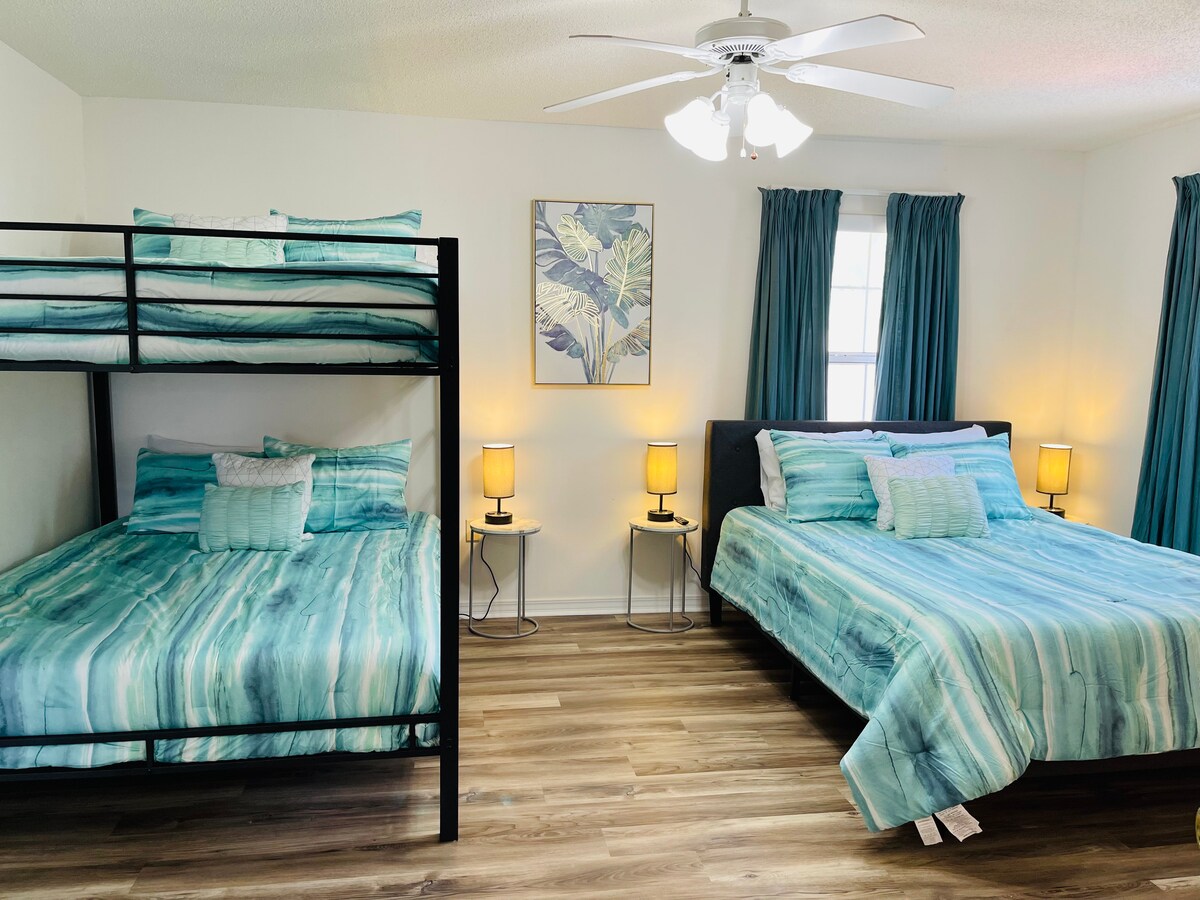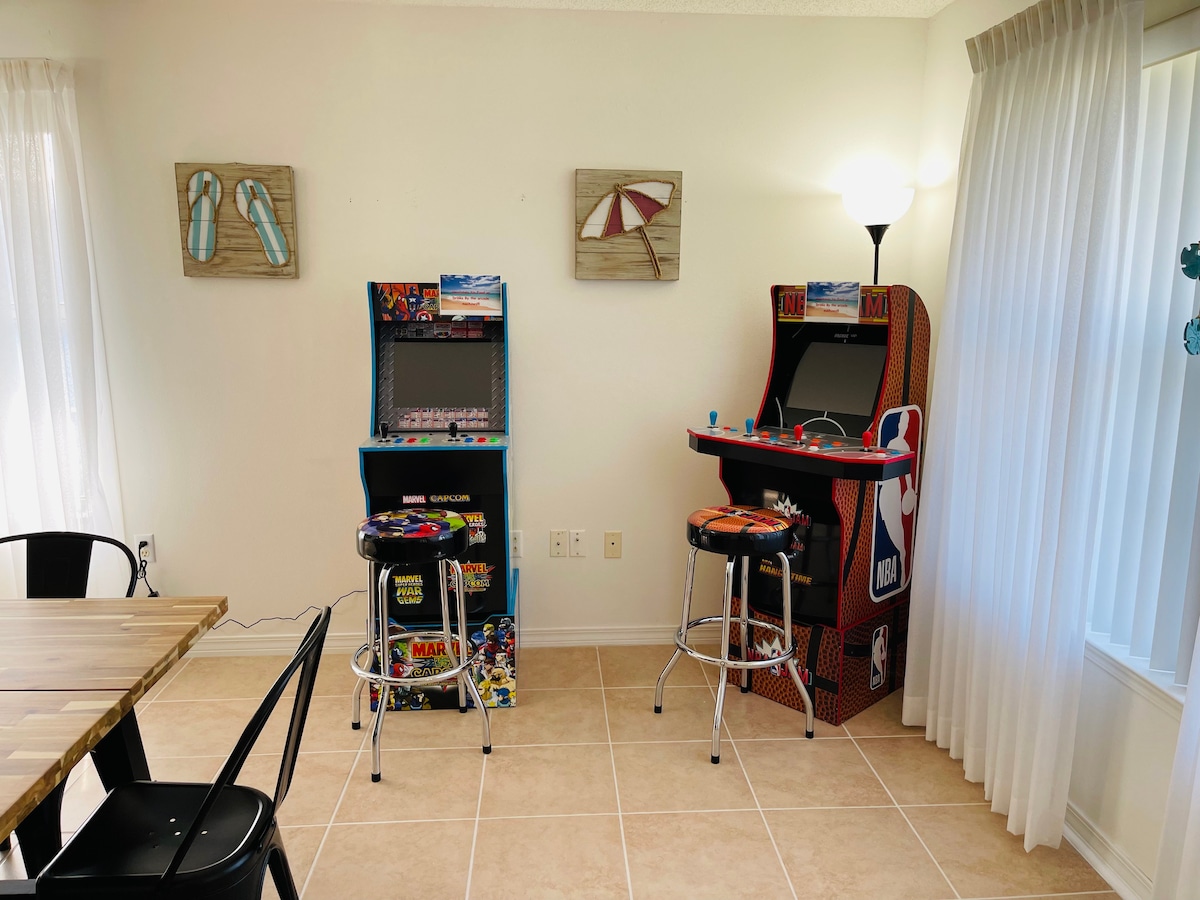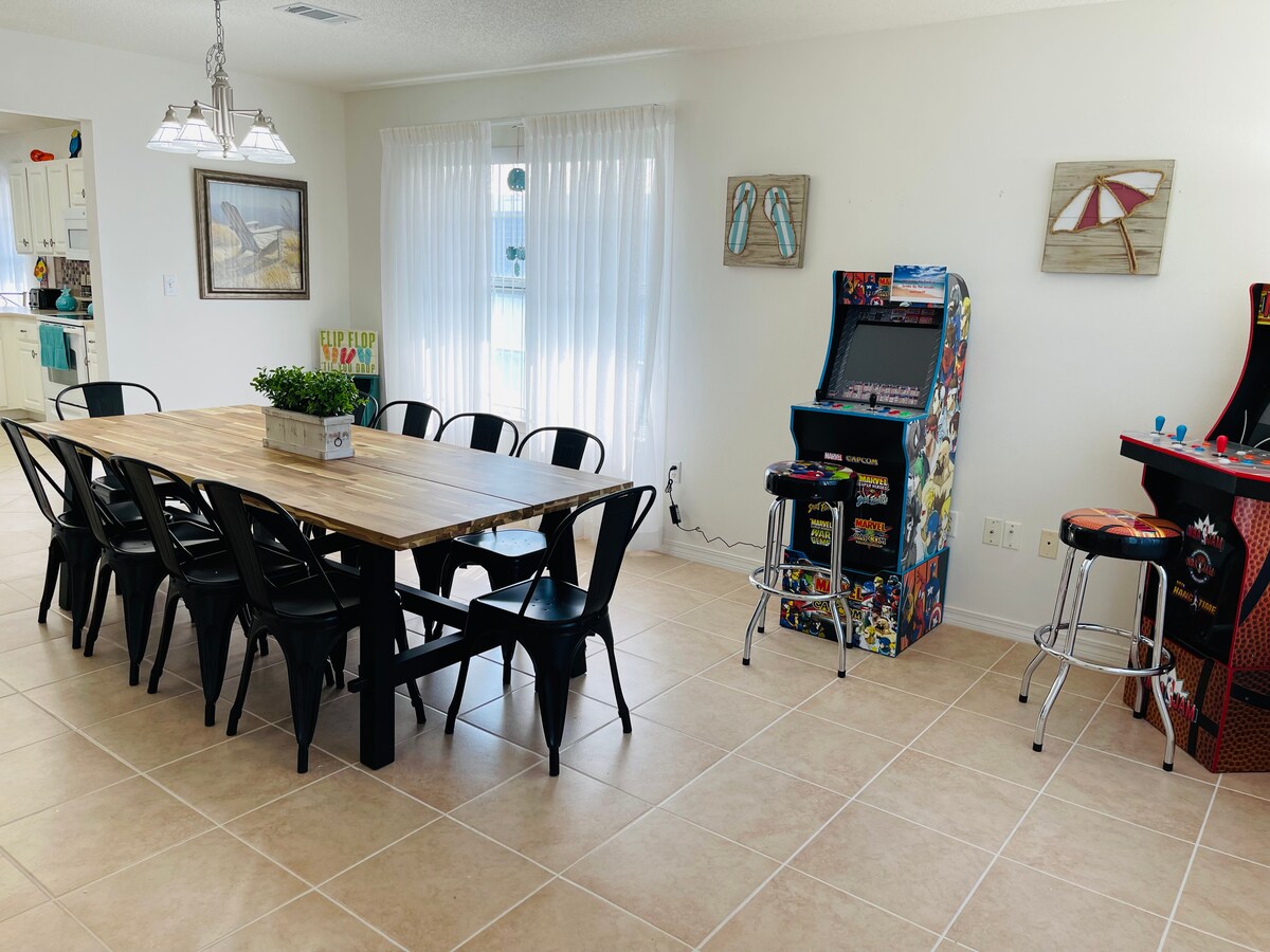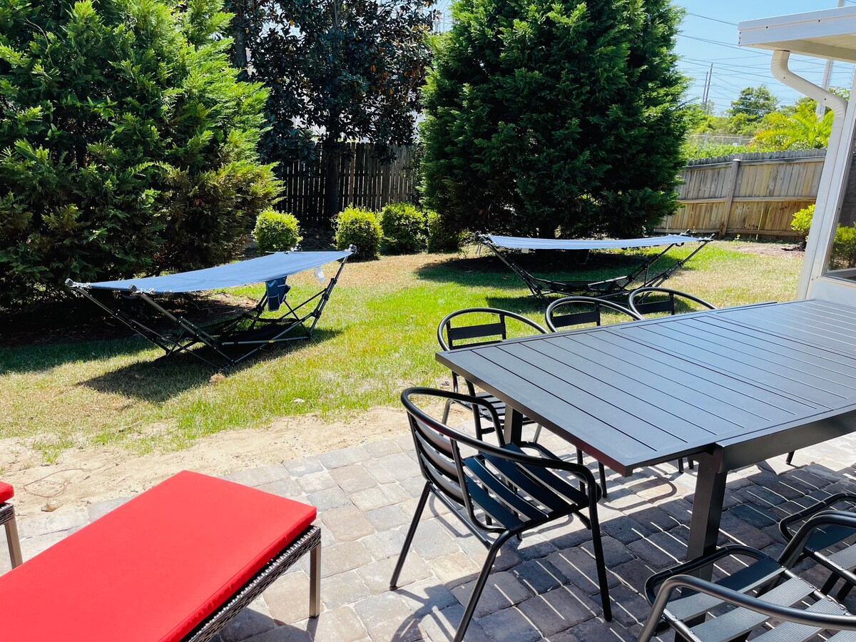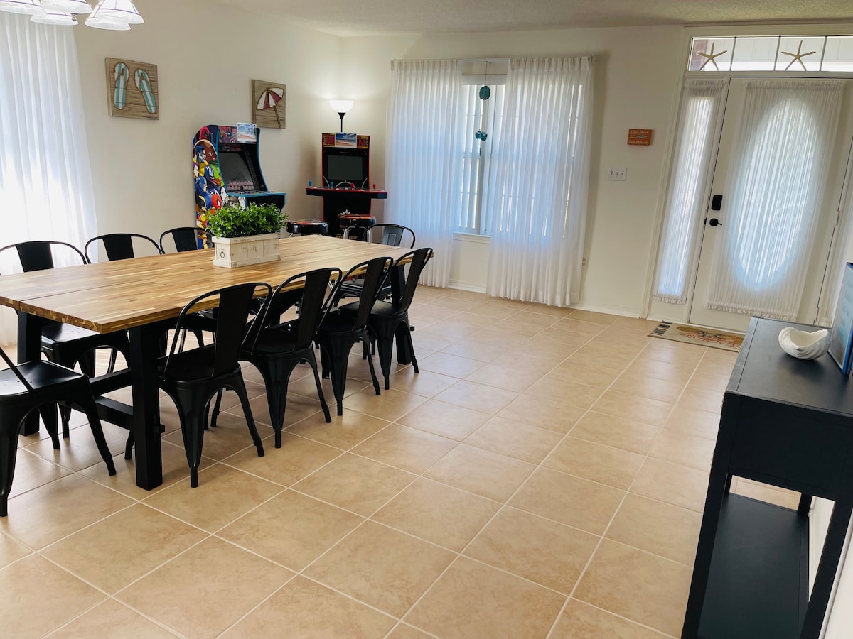 The spaceOur beautiful beach house is ready to host you! 3 bedrooms, 2 full bathrooms. Bedroom #1 has a king size bed. Bedroom #2 has also a king size bed. This two bedrooms sharing a full size bathroom. Bedroom #3 has queen size bed and a bunk bed of queen over queen bed. This room has the master bathroom with a stand alone shower and double vanity. All bedrooms has smart HD Roku TV’s. The kitchen is fully equipped with all that you need to create your family favorite meals while on vacation. The big dining room table can fit everyone in your group. 2 fun arcade machines are also in the house when you need some downtime from the beach. The large living room has a big 65” smart HD TV. This room leads to the private sunroom in the back yard and a gas BBQ grill with an outdoor dining area. Hammocks and lounge chairs are provided as well to enjoy privacy. The garage has all your beach gear. From an umbrella, beach chairs sand play toys and a beach wagon to carry it all.