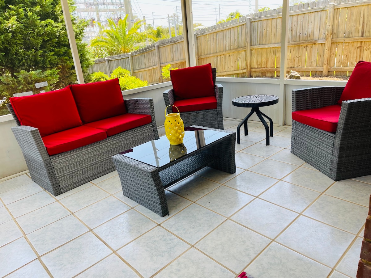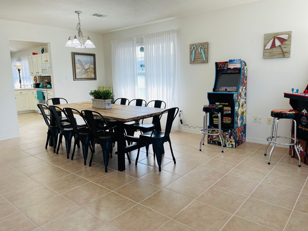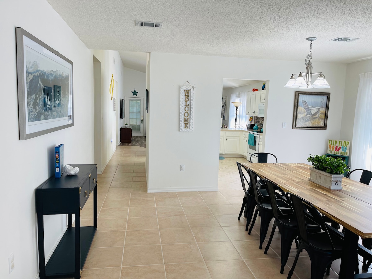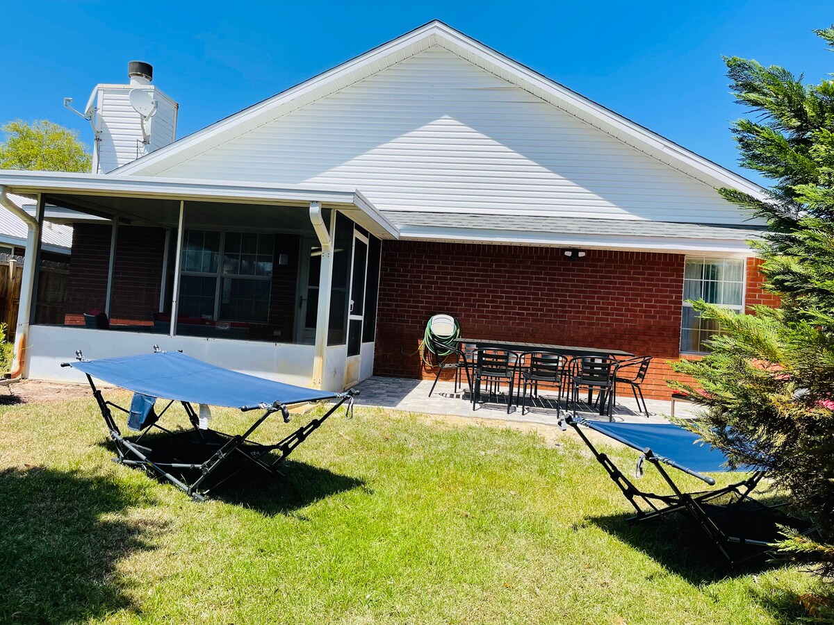 The spaceOur beautiful beach house is ready to host you! 3 bedrooms, 2 full bathrooms. Bedroom #1 has a king size bed. Bedroom #2 has also a king size bed. This two bedrooms sharing a full size bathroom. Bedroom #3 has queen size bed and a bunk bed of queen over queen bed. This room has the master bathroom with a stand alone shower and double vanity. All bedrooms has smart HD Roku TV’s. The kitchen is fully equipped with all that you need to create your family favorite meals while on vacation. The big dining room table can fit everyone in your group. 2 fun arcade machines are also in the house when you need some downtime from the beach. The large living room has a big 65” smart HD TV. This room leads to the private sunroom in the back yard and a gas BBQ grill with an outdoor dining area. Hammocks and lounge chairs are provided as well to enjoy privacy. The garage has all your beach gear. From an umbrella, beach chairs sand play toys and a beach wagon to carry it all.