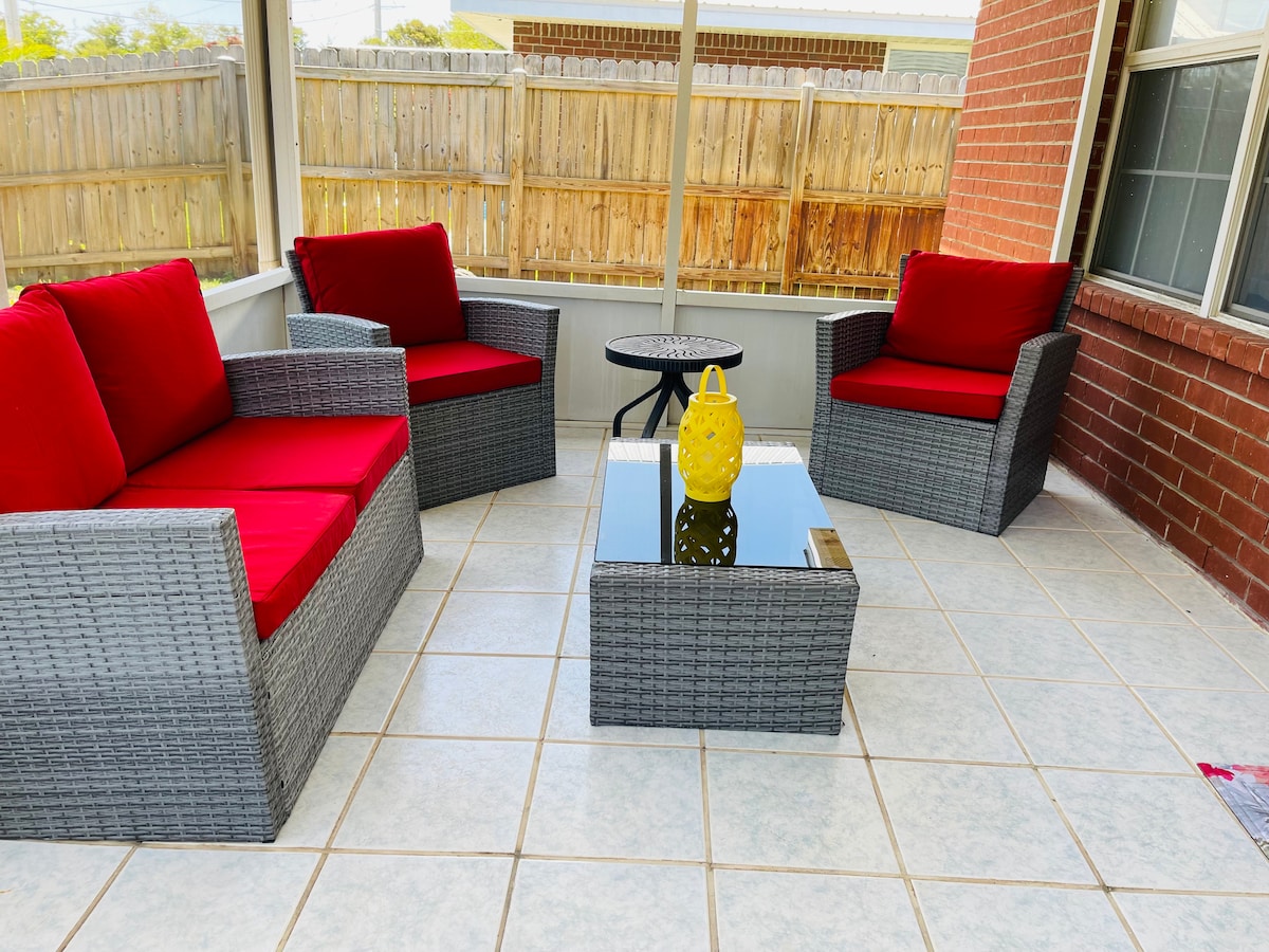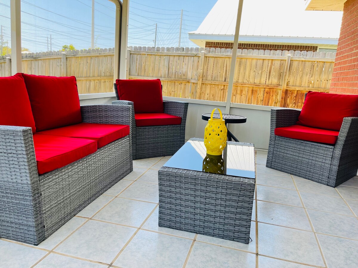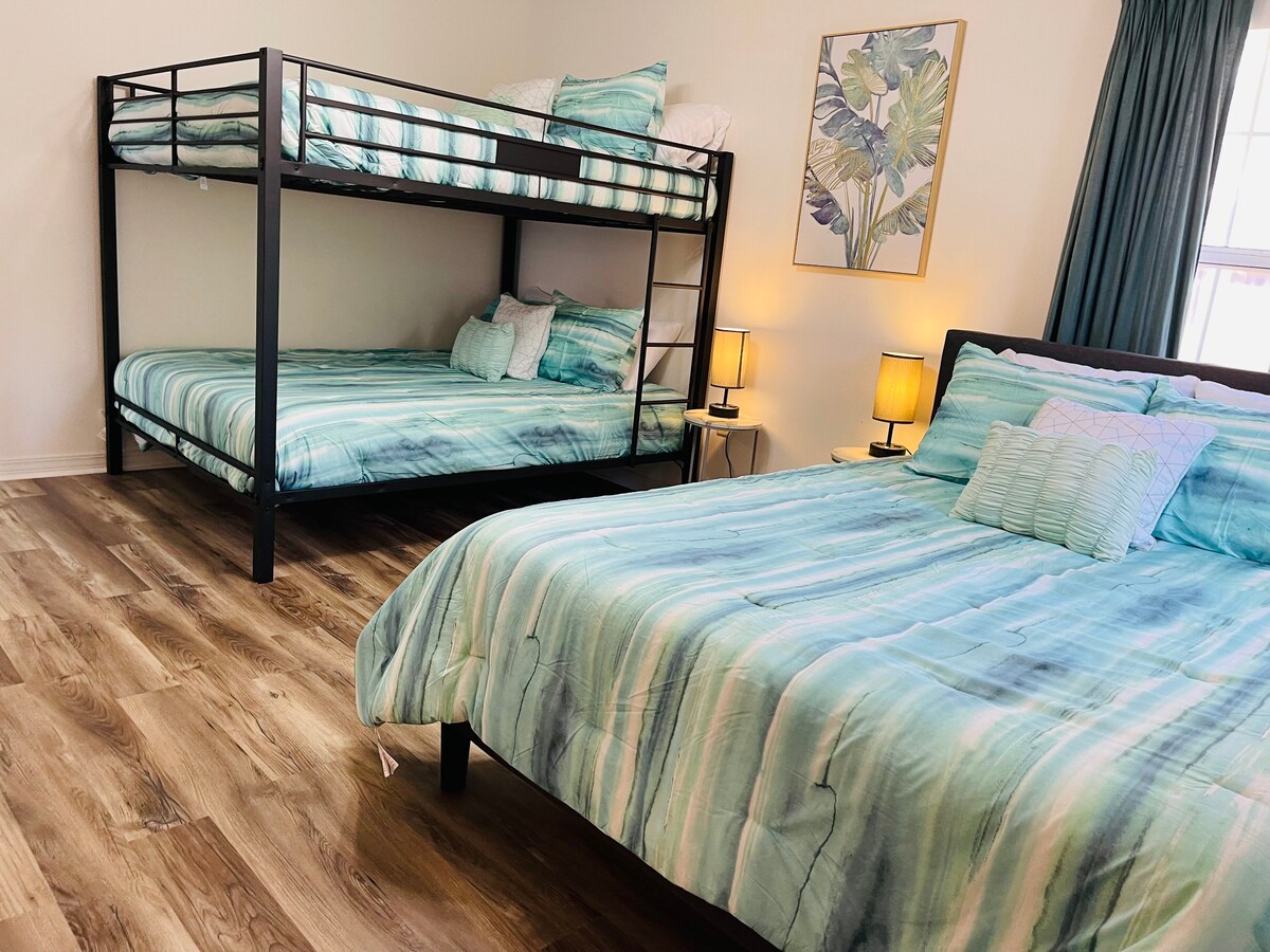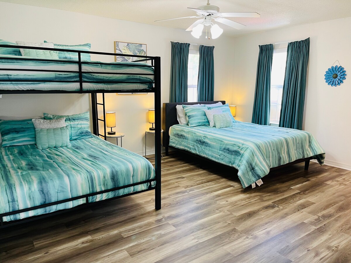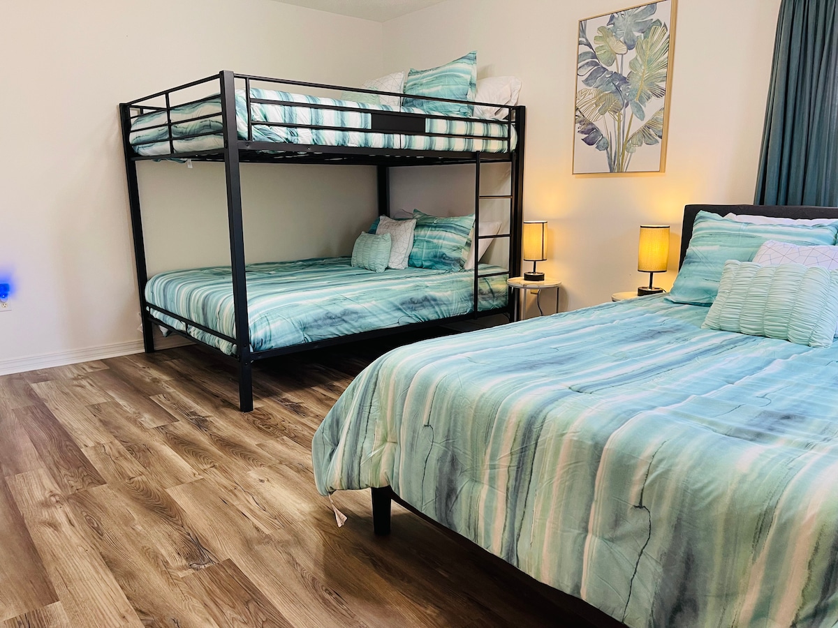 The spaceOur beautiful beach house is ready to host you! 3 bedrooms, 2 full bathrooms. Bedroom #1 has a king size bed. Bedroom #2 has also a king size bed. This two bedrooms sharing a full size bathroom. Bedroom #3 has queen size bed and a bunk bed of queen over queen bed. This room has the master bathroom with a stand alone shower and double vanity. All bedrooms has smart HD Roku TV’s. The kitchen is fully equipped with all that you need to create your family favorite meals while on vacation. The big dining room table can fit everyone in your group. 2 fun arcade machines are also in the house when you need some downtime from the beach. The large living room has a big 65” smart HD TV. This room leads to the private sunroom in the back yard and a gas BBQ grill with an outdoor dining area. Hammocks and lounge chairs are provided as well to enjoy privacy. The garage has all your beach gear. From an umbrella, beach chairs sand play toys and a beach wagon to carry it all.